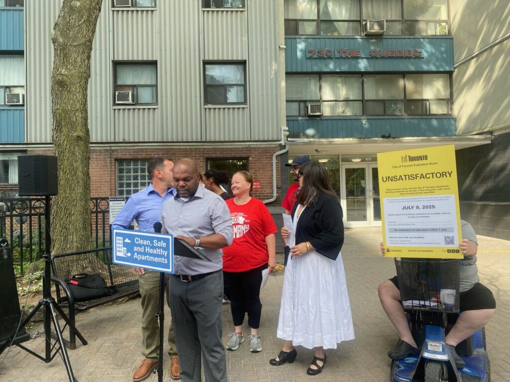 The Ombudsperson’s report set the stage for items to come to Council that are in our “Give RentSafeTO Teeth” campaign. Motions were moved by the Mayor’s Office and Councillor Josh Matlow, which will be coming back to Committee and Council in September: remedial action and standardized compliance. As well as a STANDARD WORK ORDER! As for the colour-coded signs? Those will be coming to Council at the end of this month!