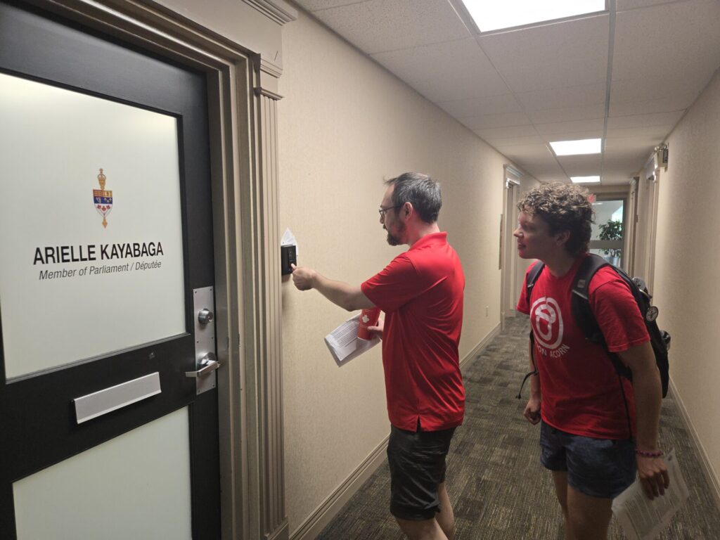 ACORN members visited the office of MP Arielle Kayabaga to demand that the federal government cut ties with the Adani Group over its role in the forced displacement of residents in Dharavi, Mumbai. Staff accepted the demand letter and spoke with members about the ongoing human rights concerns tied to Adani’s redevelopment project. Staff confirmed the message would be shared with the MP.