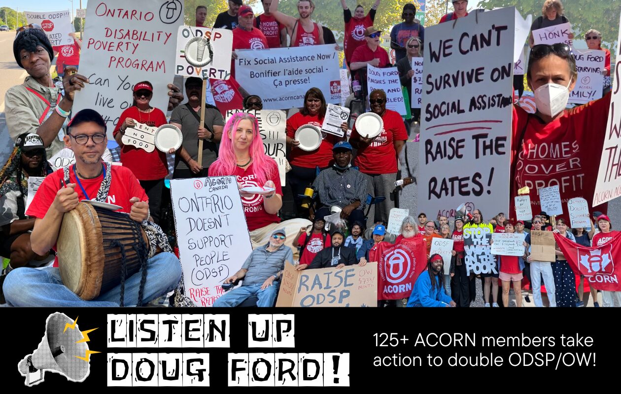 Today, 125+ ACORN members took action in six Ontario cities demanding the Province raise social assistance rates, with…