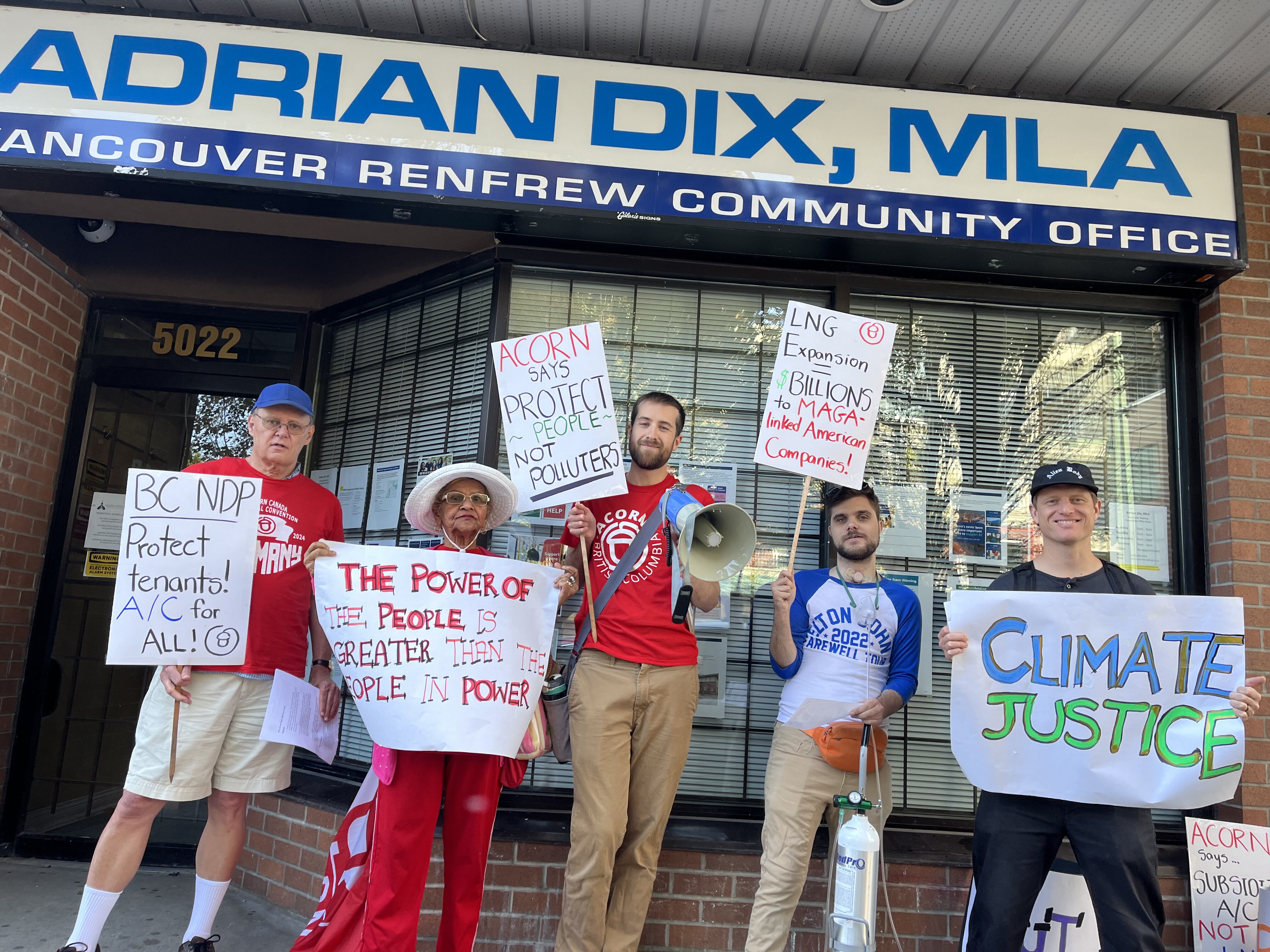 ACORN members from across the Lower Mainland gathered outside the constituency office of Energy and Climate Minister Adrian…