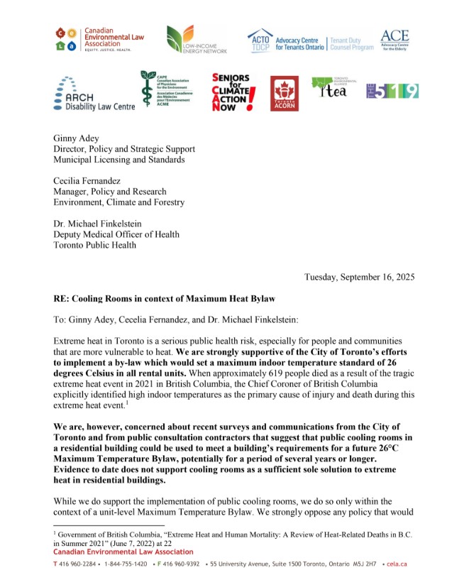 Toronto ACORN and partners in the Toronto Heat Safety Coalition sent a letter to the City of Toronto…