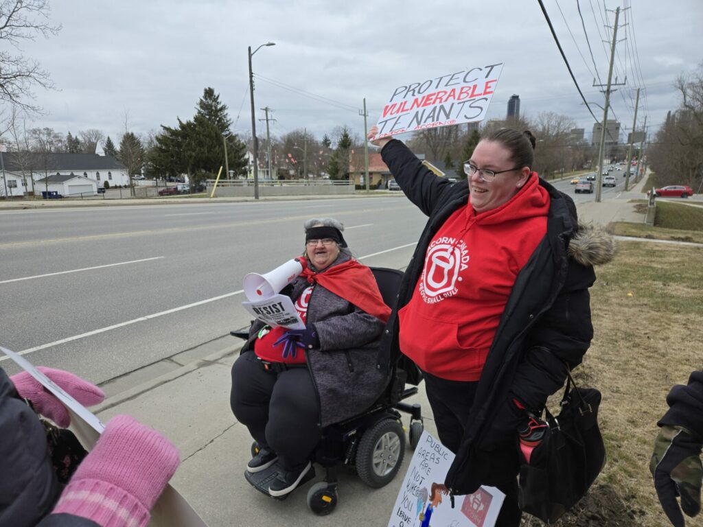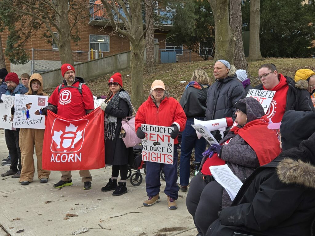 That’s why the “ACORN on the Walnut” tenant union is fighting back! Members kicked off the action by crashing an interview being given by an LMCH representative to CTV, filling the background with signs and chants so they KNEW how fed up tenants are!