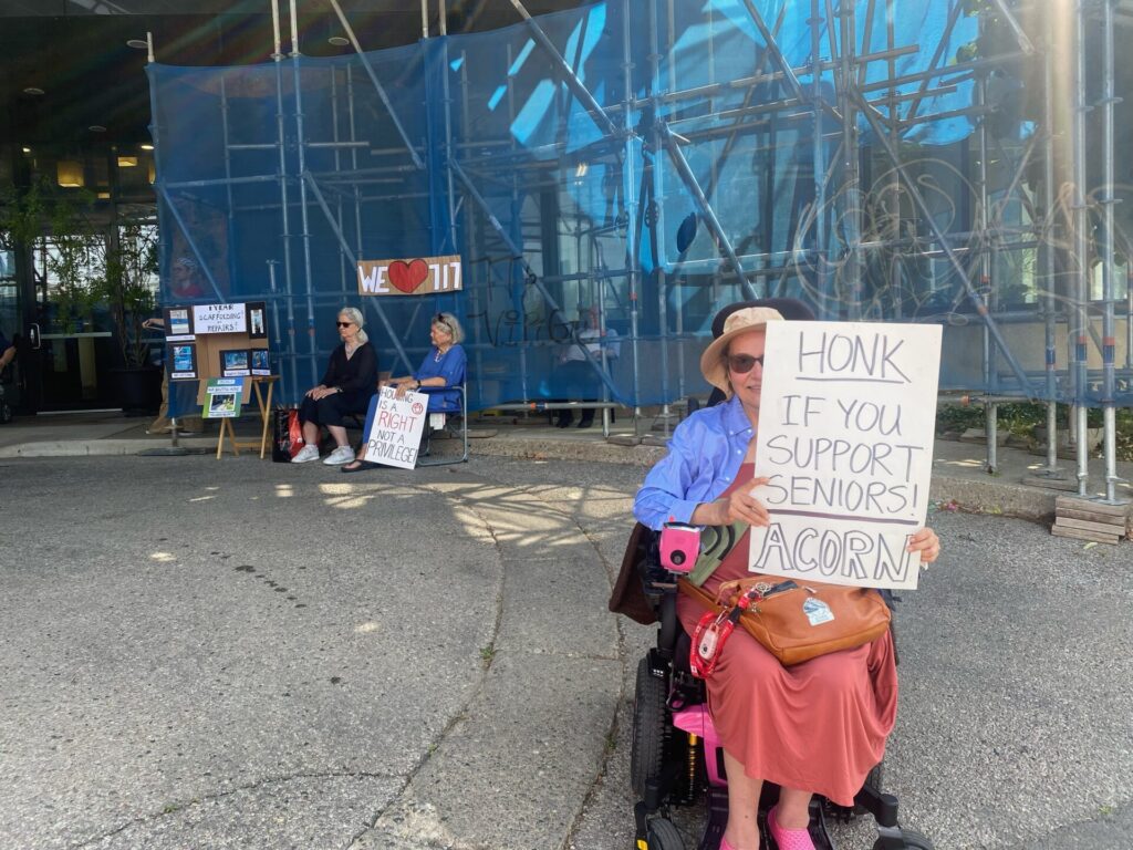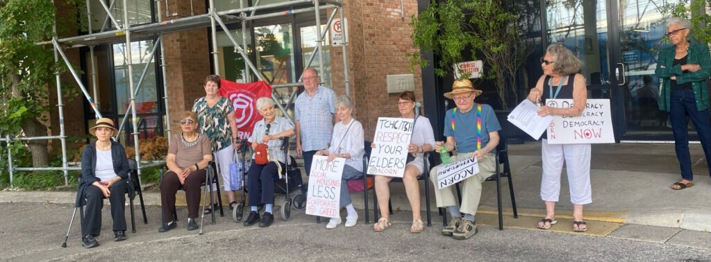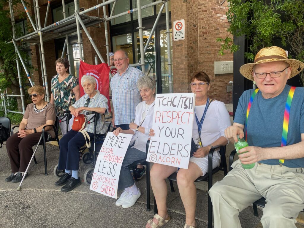 On July 24th 2025, tenants of 717 Broadview Ave (a building owned and run by Toronto Seniors Housing Corporation, a subsidiary of Toronto Community Housing Corporation) rallied in front of their building to demand transparency, safety, and respect from the TSH corporation and staff.