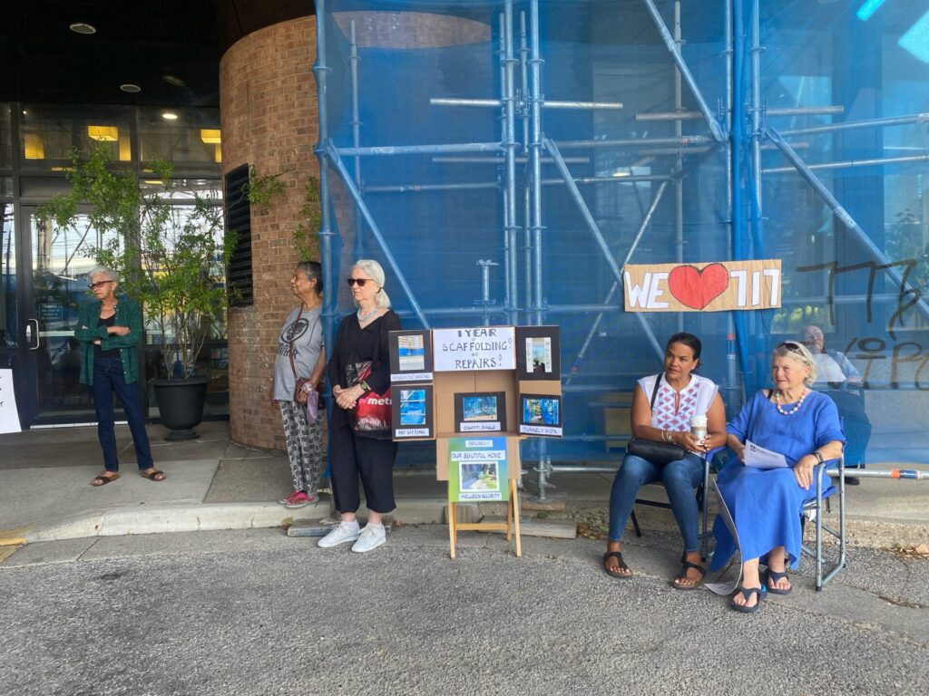 For over a year, seniors at the building have lived under the shadow of ugly, graffiti covered scaffolding. Despite Toronto requiring construction plans to be public, tenants of this building have sought answers from TSH staff with no luck. This is theoretically the nicest and safest seniors residence under TSH, and yet residents are still left with no clear plan for a construction timeline, limited access to their gardens, and almost no on-site support. With minimal superintendent presence and no on site security, tenants are calling for urgent changes: regular and open communication, security improvements, and a democratic voice in decisions affecting their homes.